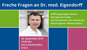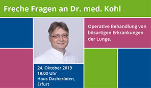Bad Berka, 21. Oktober 2019 --- Die Veranstaltungsreihe „Freche Fragen an Chefärzte“ der Zentralklinik Bad Berka lädt am Donnerstag (24.10.2019) zu einer neuen Runde ein. Dr. med. Thomas Kohl, Chefarzt der Klinik für…