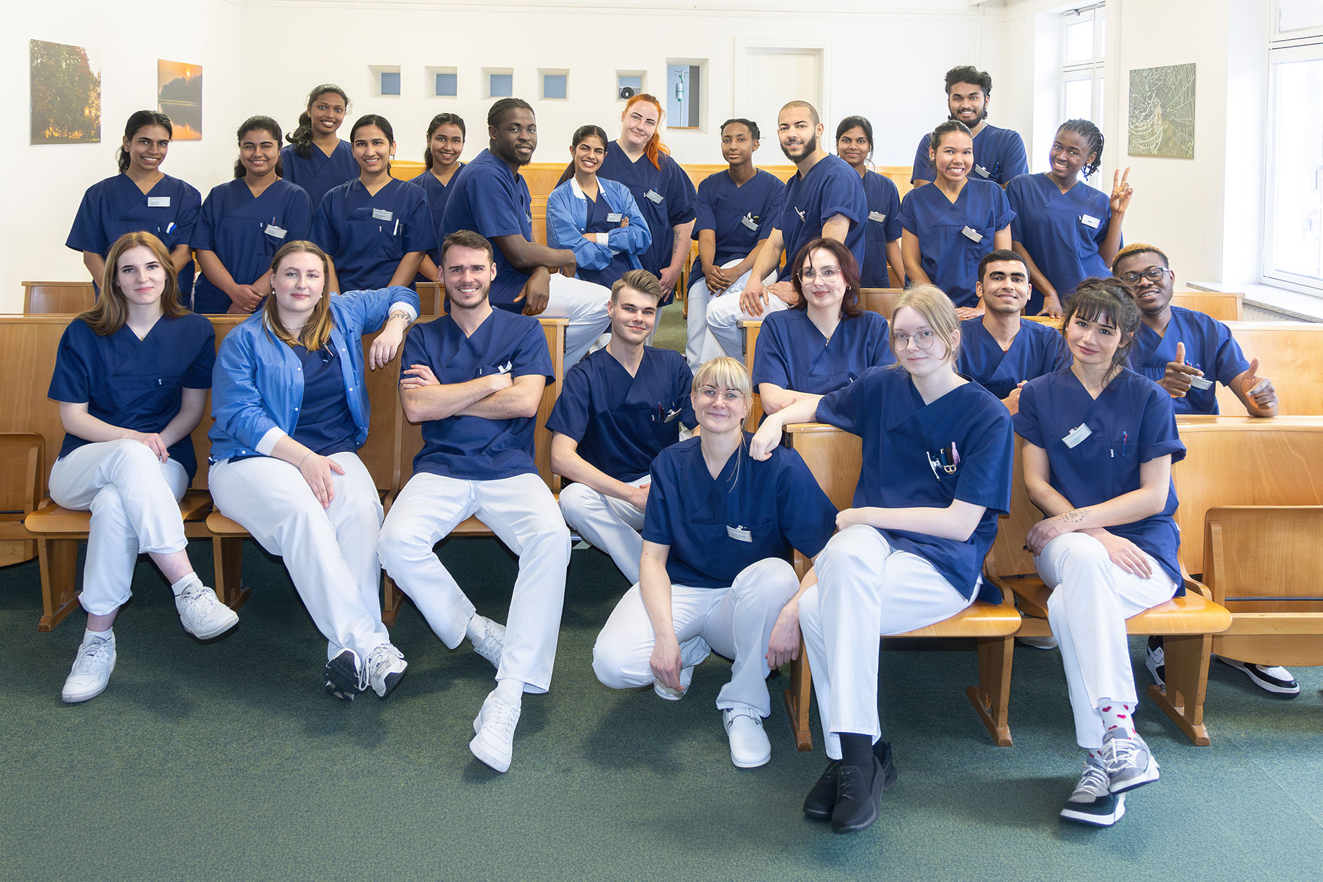 Bad Berka, 27. März 2026 ––– Pflegeschüler des letzten Ausbildungsjahres meisterten in der vergangenen Woche die „Schülerstation“. Zum 27. Mal hatten damit die künftigen Schwestern und Pfleger „den Hut“ bei der Patientenversorgung auf. Die rund 54 Patienten der Station A3 des Querschnittgelähmten-Zentrums der Zentralklinik wurden organisatorisch und pflegerisch nur von den 27 Auszubildenden des 3. Ausbildungsjahres der generalistischen Pflegeausbildung betreut. Die stationseigenen Pflegekräfte, Praxisanleiter und die Lehrausbildung beaufsichtigten den Stationsalltag.